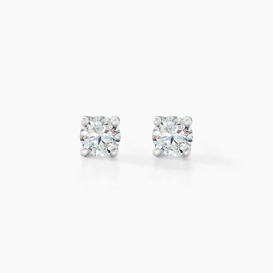 Boucles D’oreilles Or Blanc 375/1000 Puces Diamants 0.15cts Serti 4 Griffes