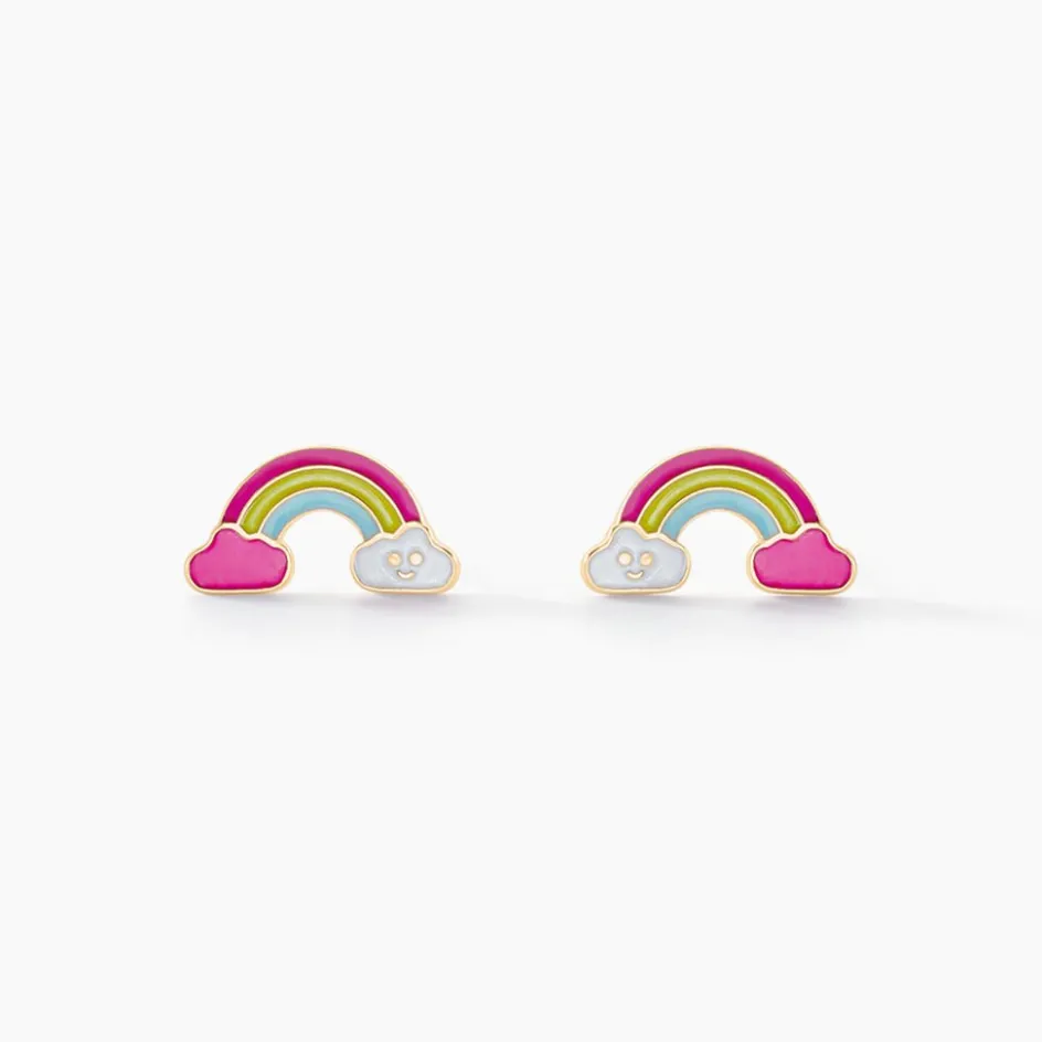 Boucles D’oreilles Puces Or Jaune 375/1000 Arc En Ciel Email Multicolore
