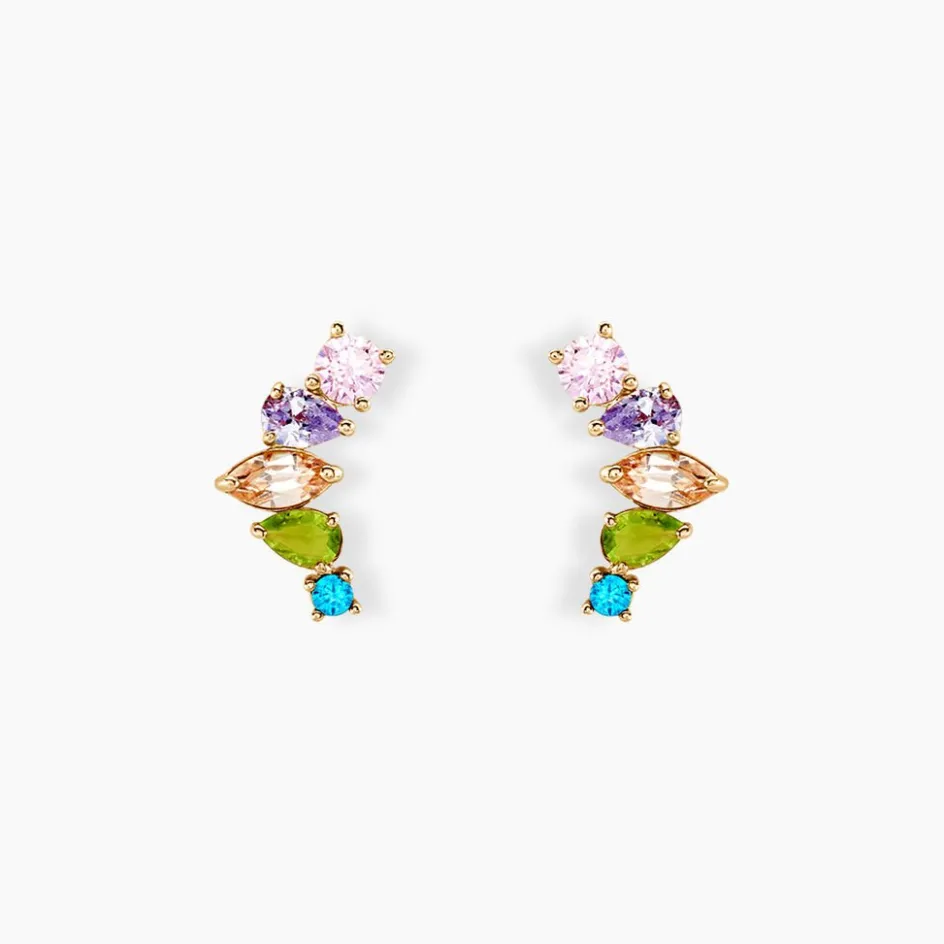 Boucles D’oreilles Puces Grimpantes Or Jaune 375/1000 Barrette Muliticolores Et Mutliformes Oxydes De Zirconium Sertis Griffes
