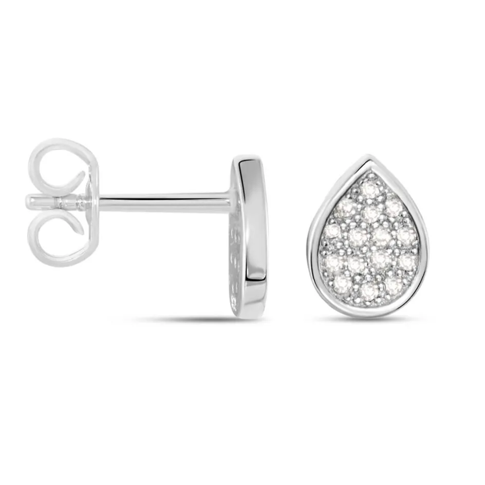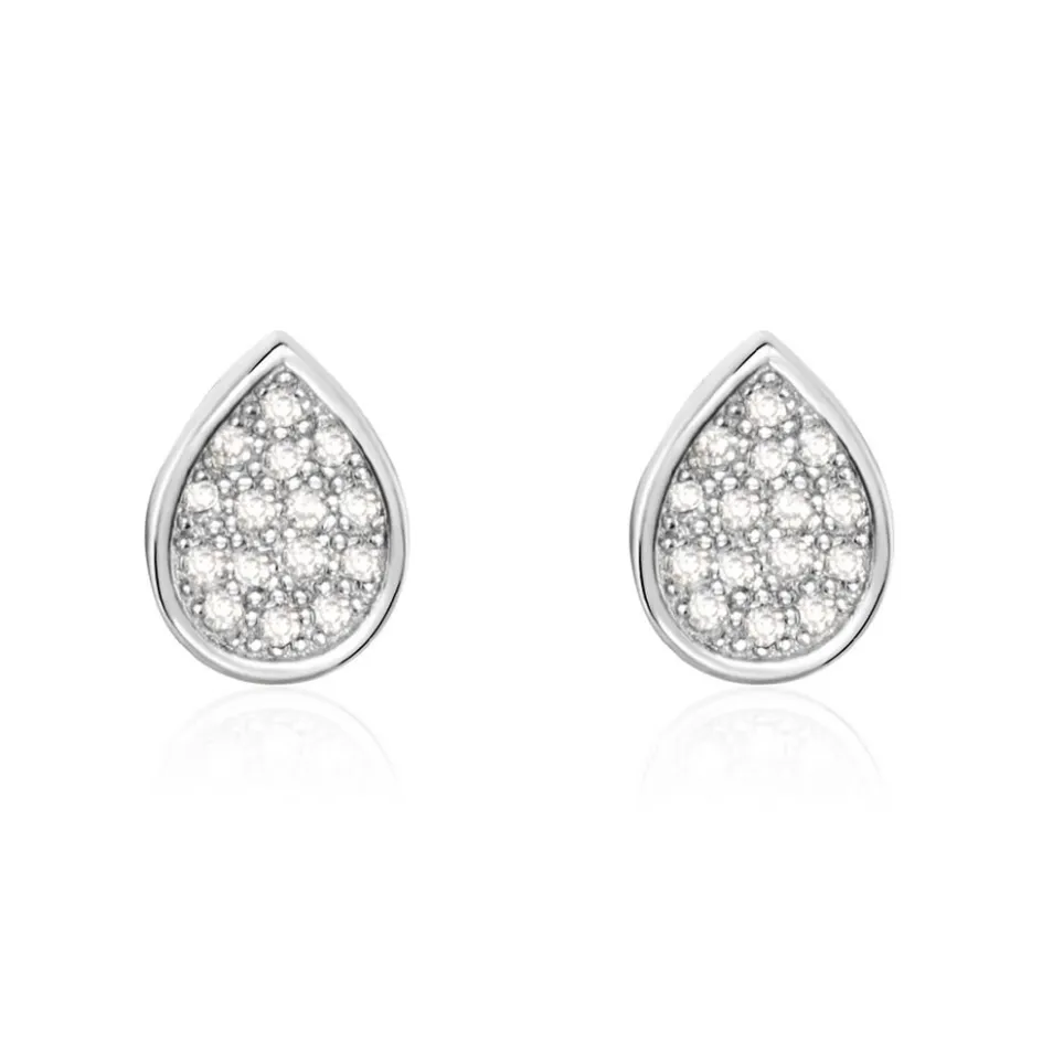 Boucles D’oreilles Puces Argent Blanc 925/1000 Gouttes Pavage Oxydes De Zirconium