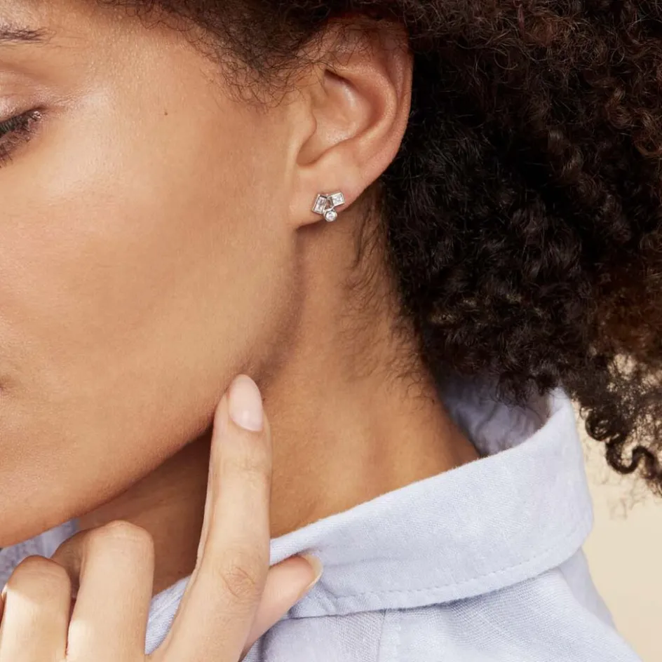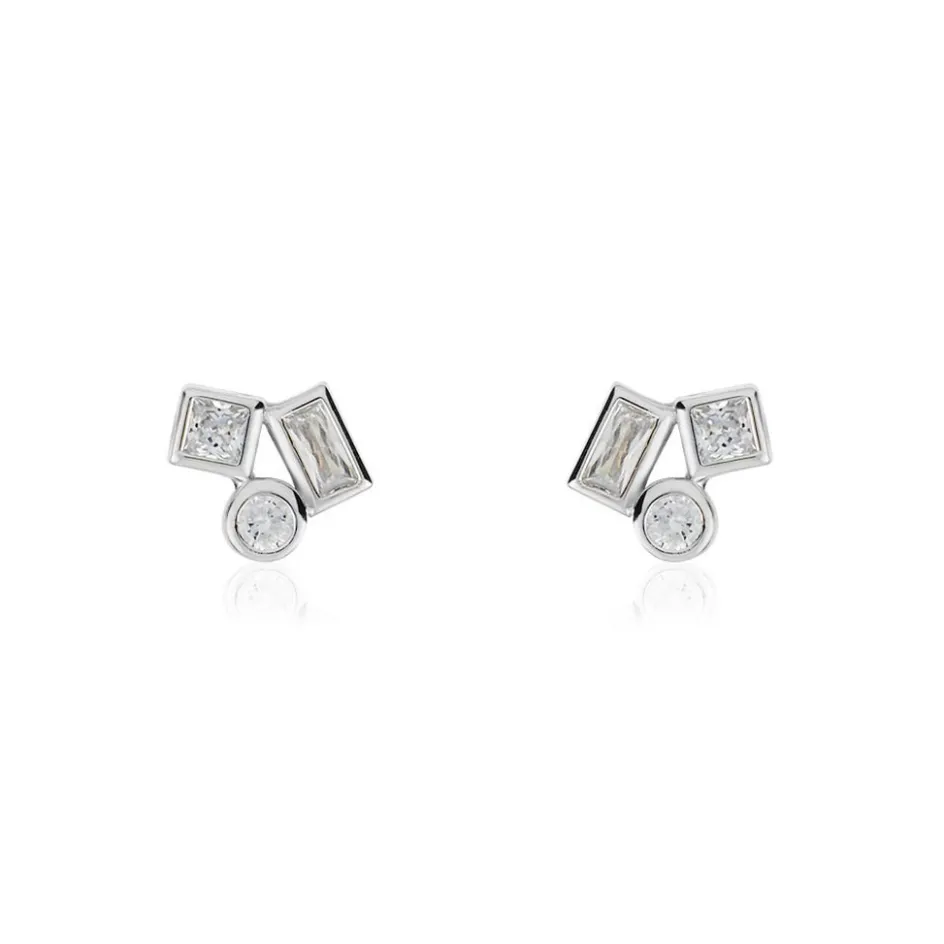 Boucles D’oreilles Puces Argent 925/1000 Formes Géometriques Micro Serti Oxydes De Zirconium