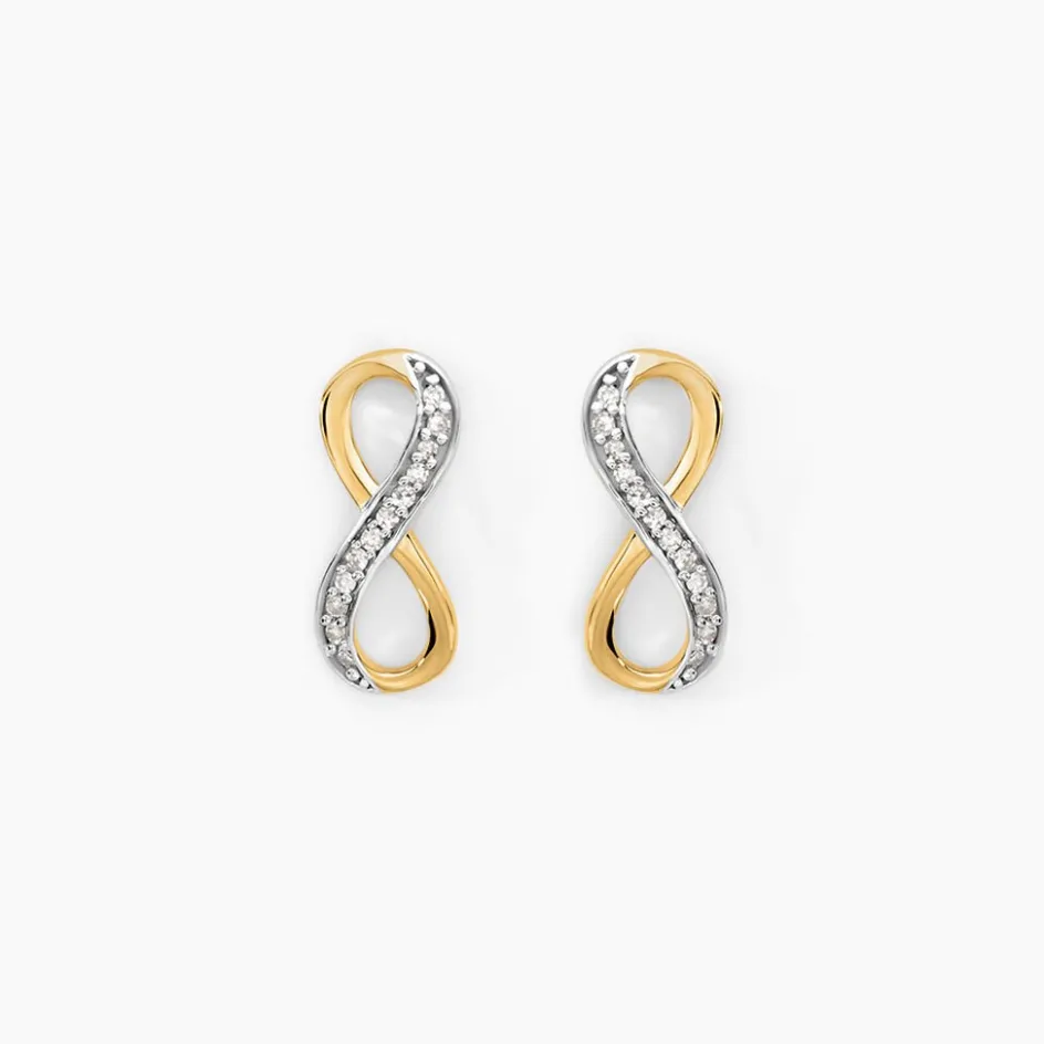 Boucles D’oreilles Puces Or Jaune 375/1000 Forme Infini Avec Pavage Diamants