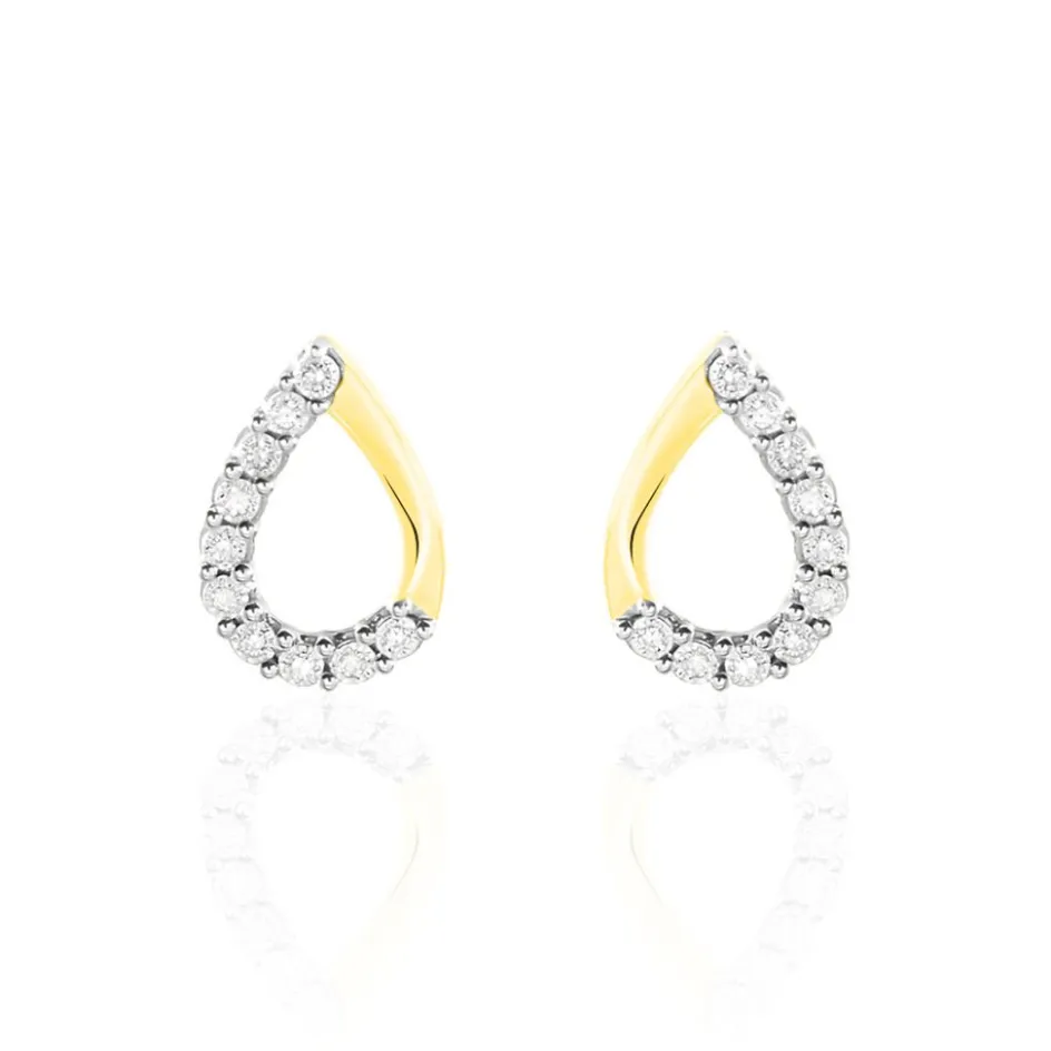 Boucles D’oreilles Or Jaune 375/1000 Formes Gouttes Diamants
