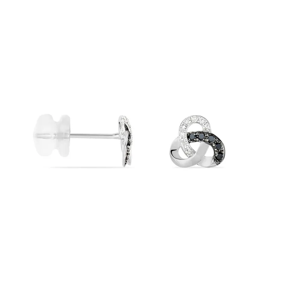 Boucles D’oreilles Or Blanc 375/1000 Constellation Diamants Blancs Et Noirs