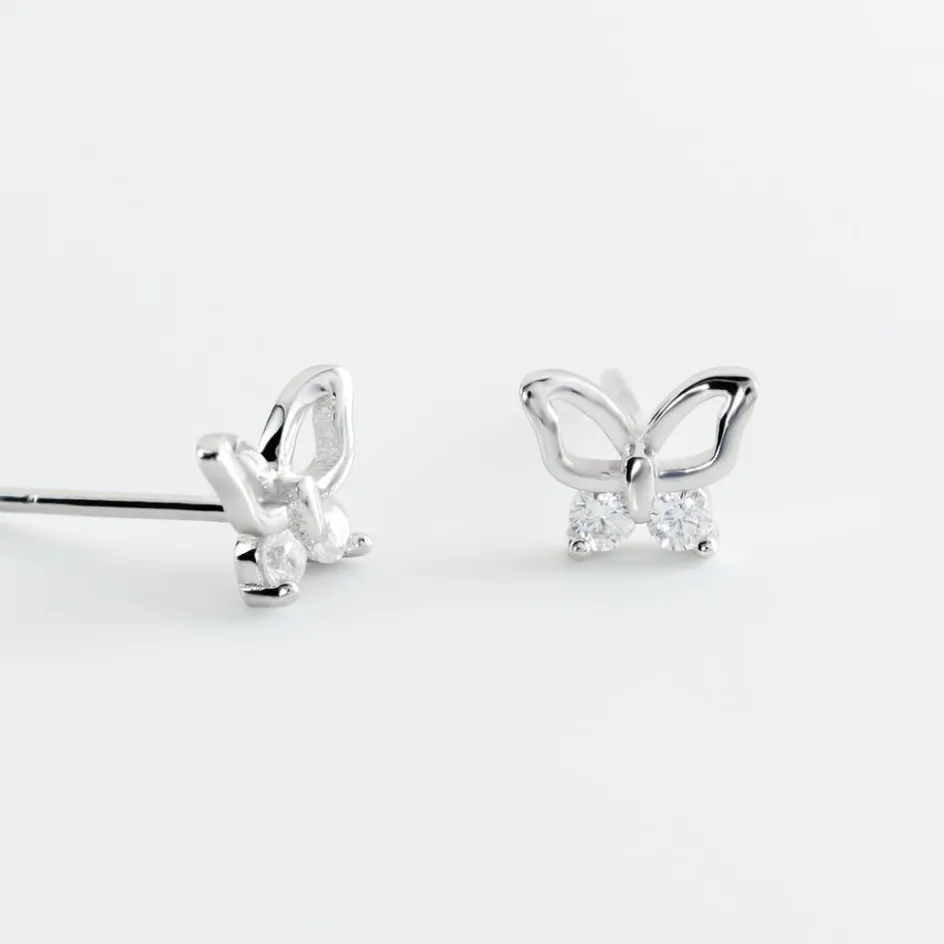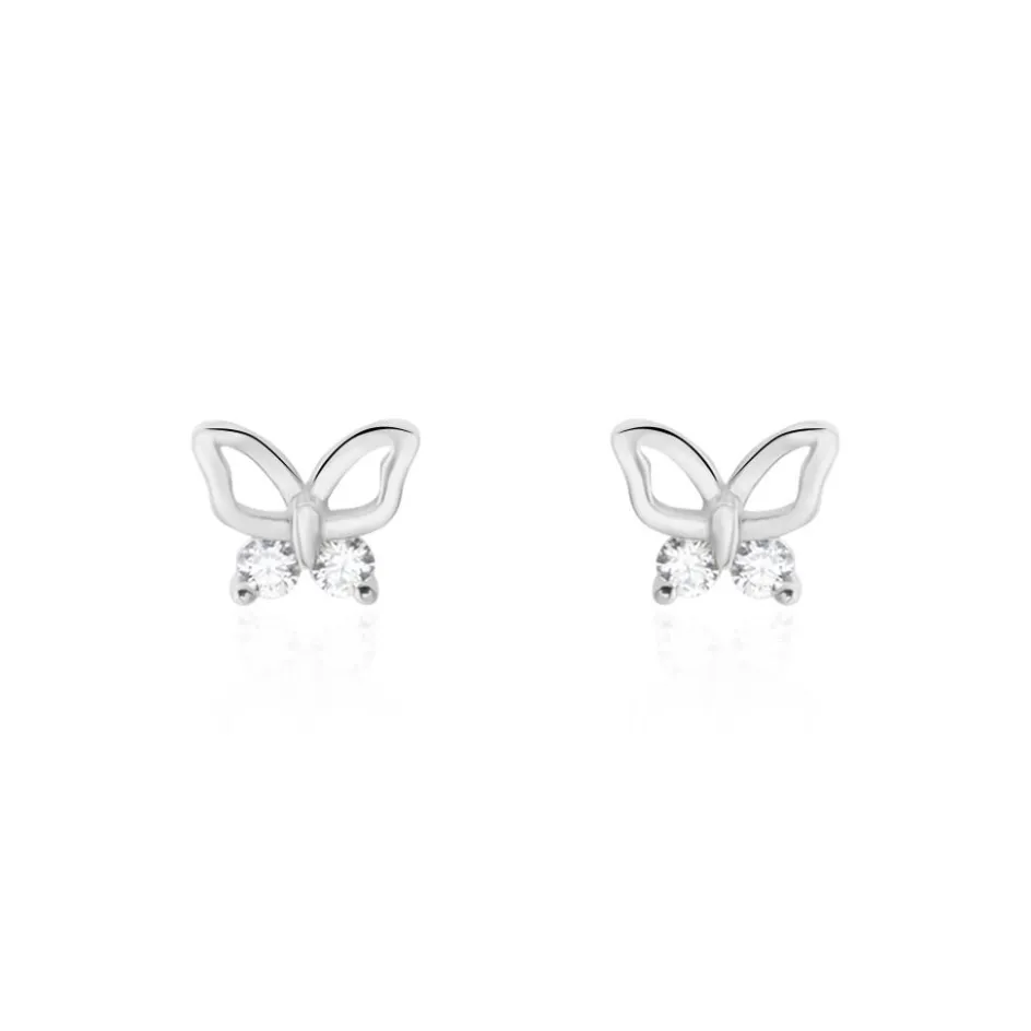 Boucles D’oreilles Puces Argent Blanc 925/1000 Papillons Sertis Griffes Oxydes De Zirconium
