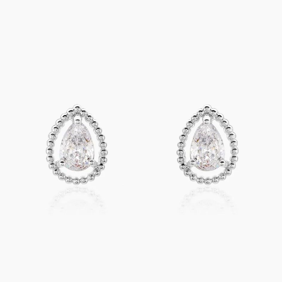 Boucles D’oreilles Puces Argent Blanc 925/1000 Gouttes Oxydes De Zirconium Entourage Perlé