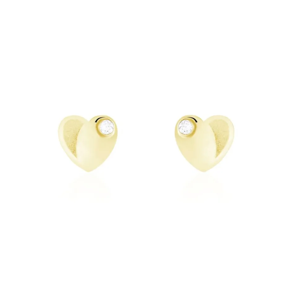 Boucles D’oreilles Puces Or Jaune 375/1000 C艙urs Oxydes De Zirconium