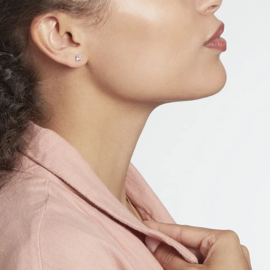 Boucles D’oreilles Puces Or Blanc 375/1000 Oxyde De Zirconium Carres 4mm