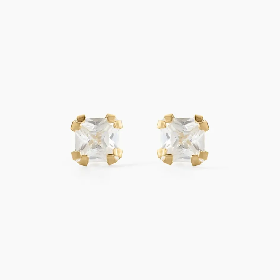 Boucles D’oreilles Or Jaune 375/1000 Puce Oxyde De Zirconium Carres 3mm