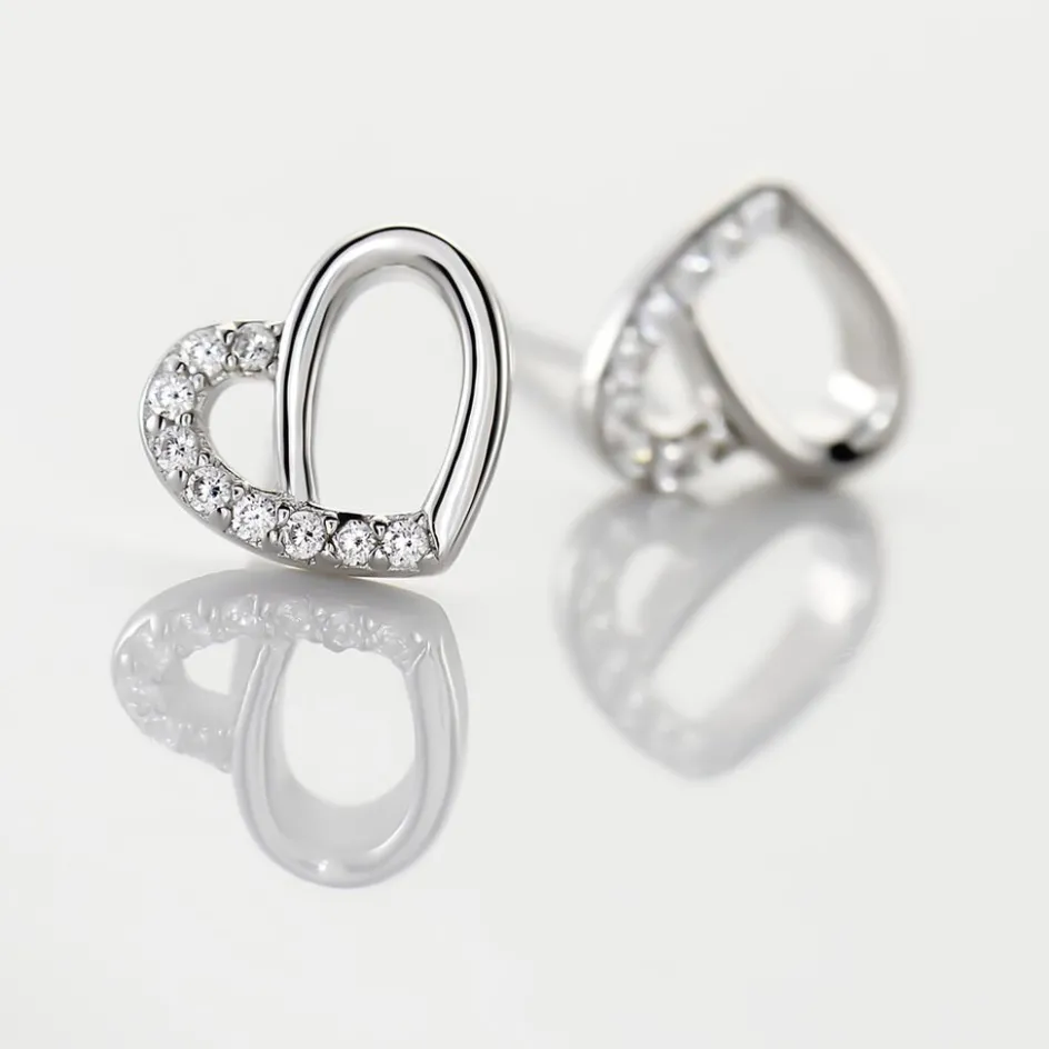 Boucles D’oreilles Puces Argent Blanc 925/1000 Dessins De C艙ur Micro Setting Oxydes De Zirconium