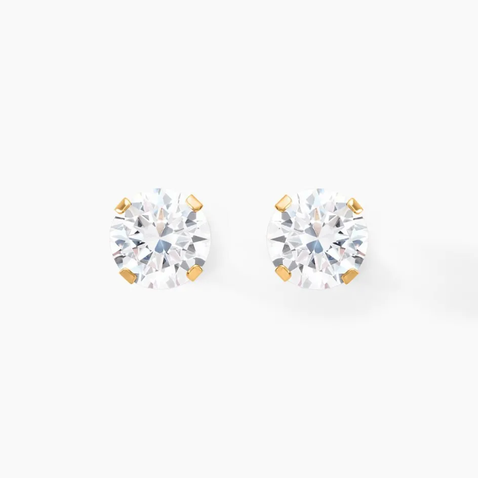 Boucles D’oreilles Or Jaune 375/1000 Puce Oxyde De Zirconium 6mm