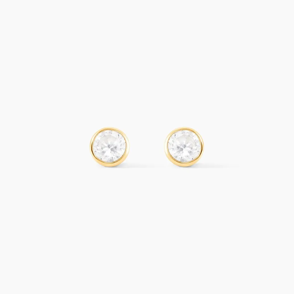 Boucles D’oreilles Or Jaune 375/1000 Puces 4mm Oxydes De Zirconium Clos Mm