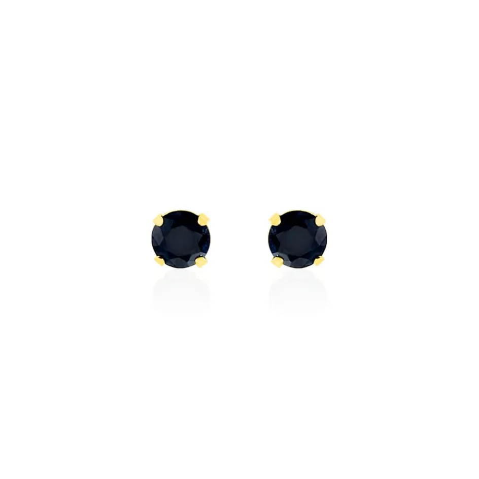 Boucles D’oreilles Or Jaune 375/1000 Puce Saphir 4mm