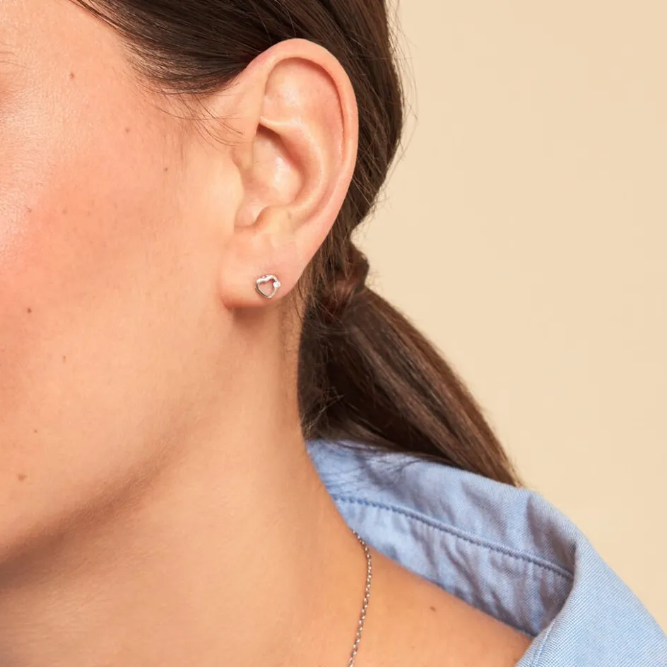 Boucles D’oreilles Puces Argent Blanc 925/1000 C艙urs Oxydes De Zirconium Serti 2 Griffes