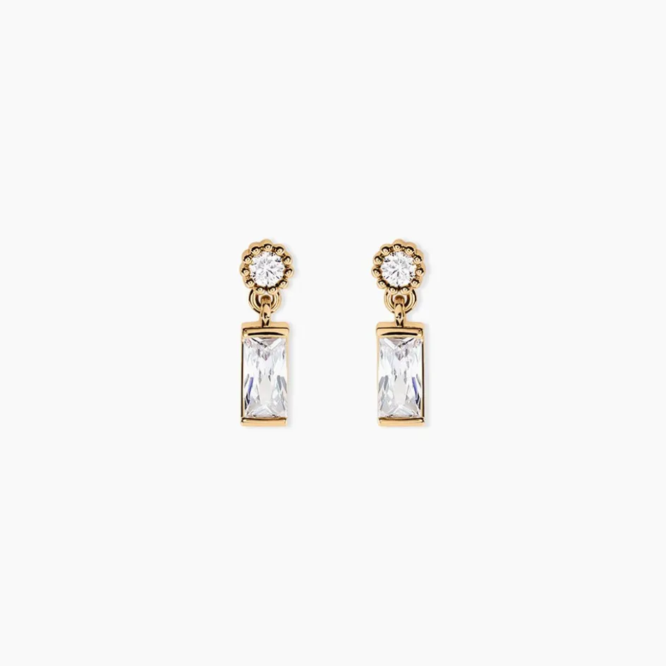 Boucles D’Oreilles Puces Plaqué Or Jaune Oxydes De Zirconium Tailles Baguettes Et Rondes 1,3Cm
