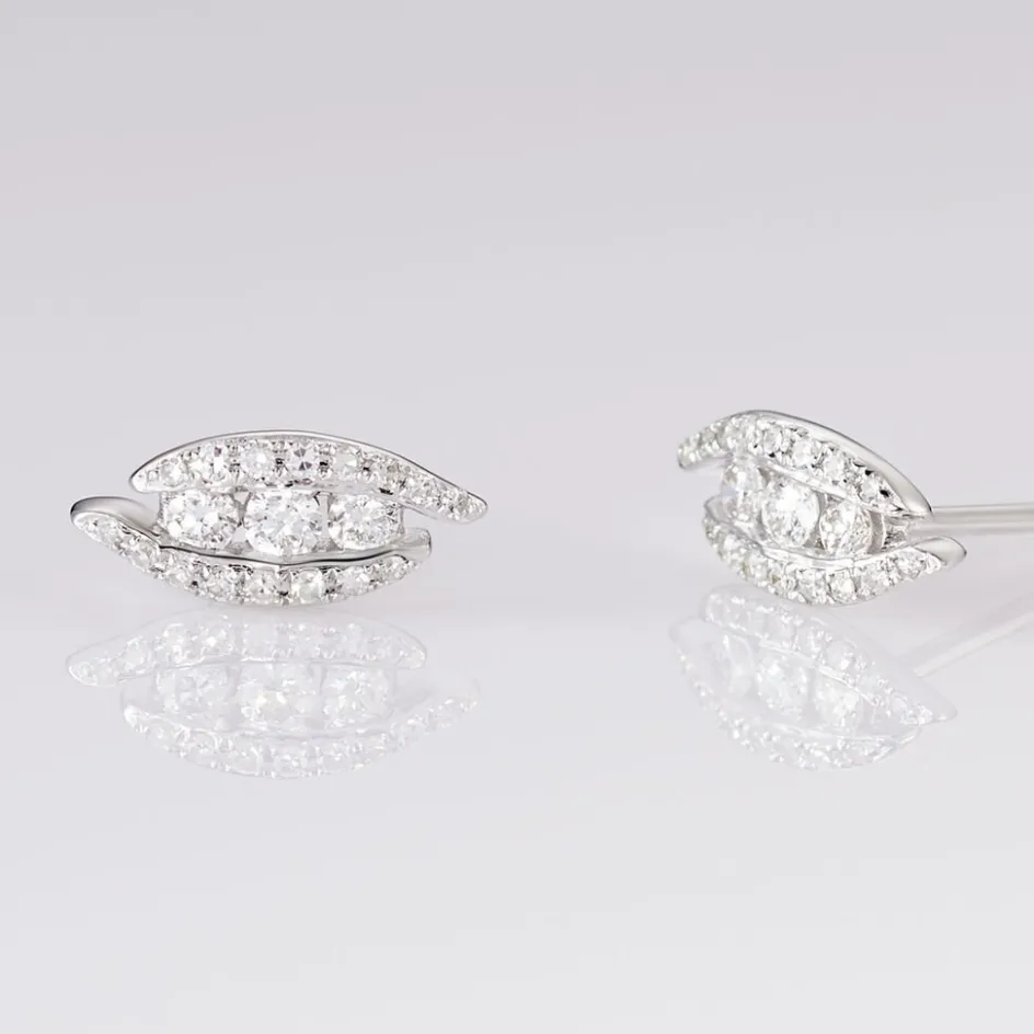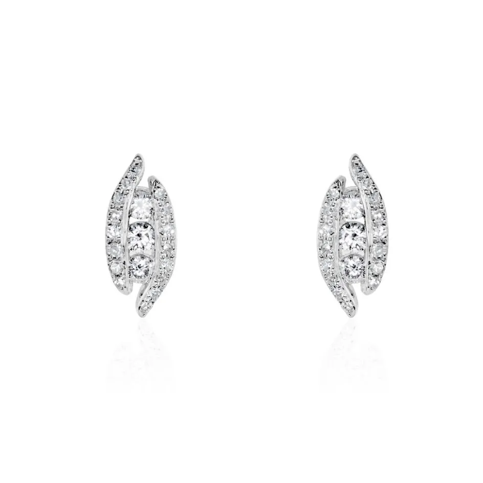Boucles D’oreilles Or Blanc 375/1000 Eternite Trilogie Diamants 0.22cts