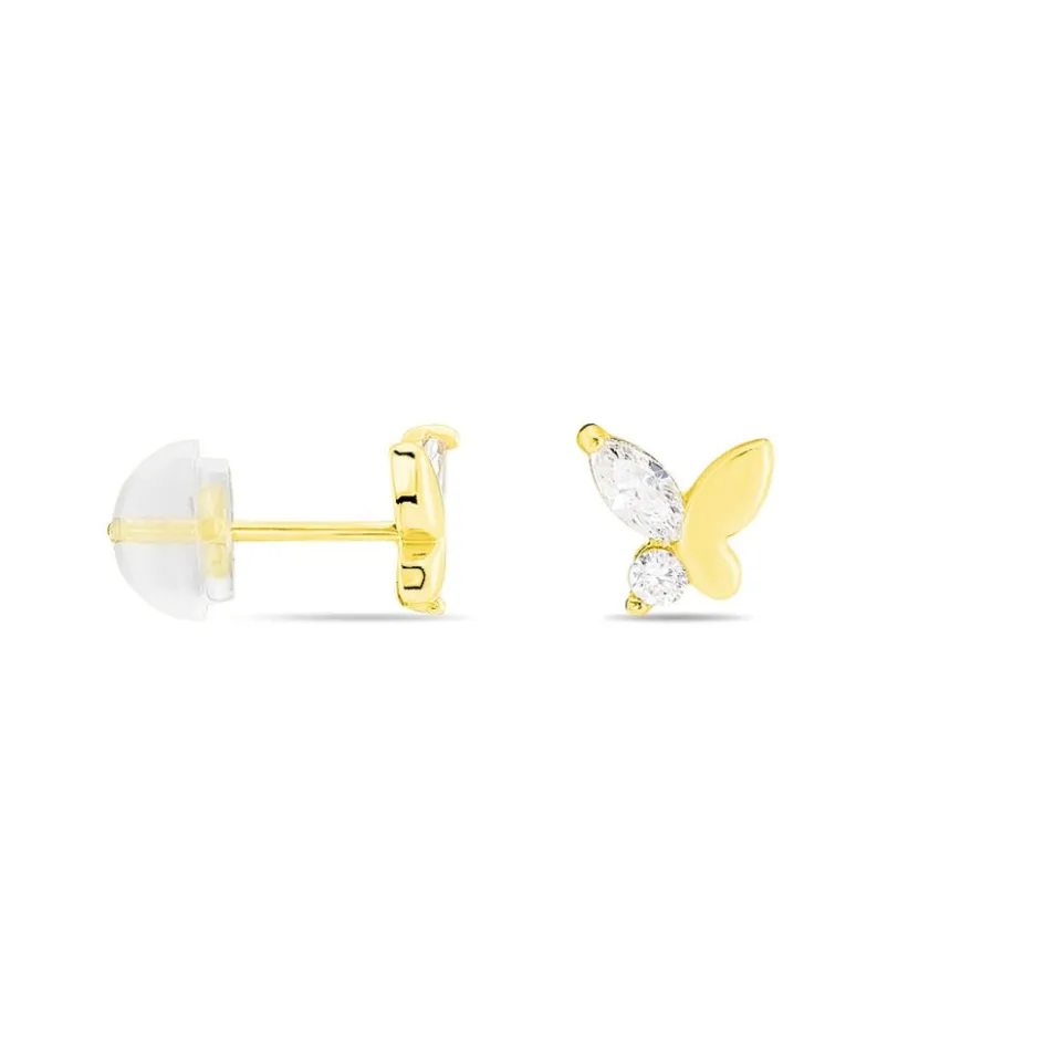 Boucles D’oreilles Or Jaune 375/1000 Puces Formes Papillons + Oxydes De Zirconium