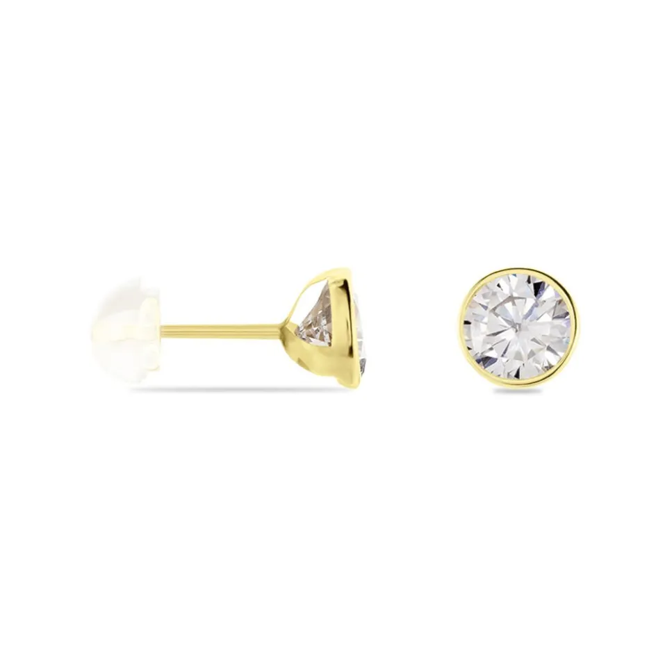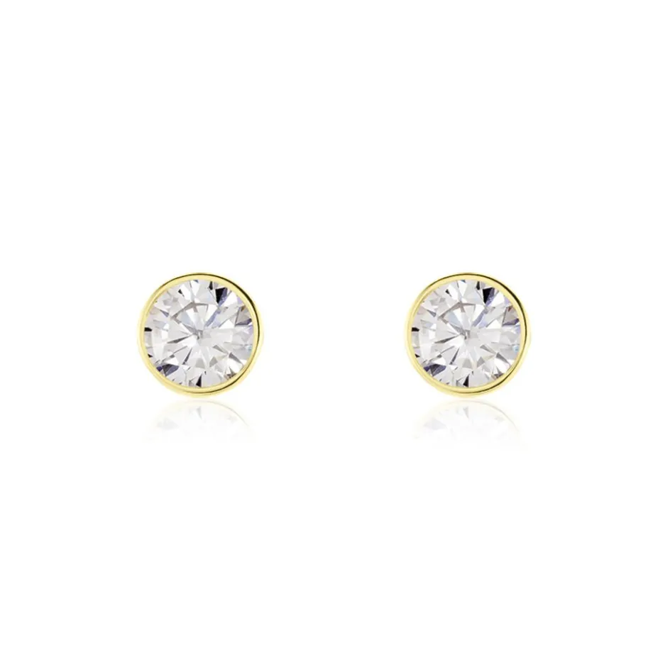 Boucles D’oreilles Puces Or Jaune 375/1000 Oxydes De Zirconium Clos 6mm