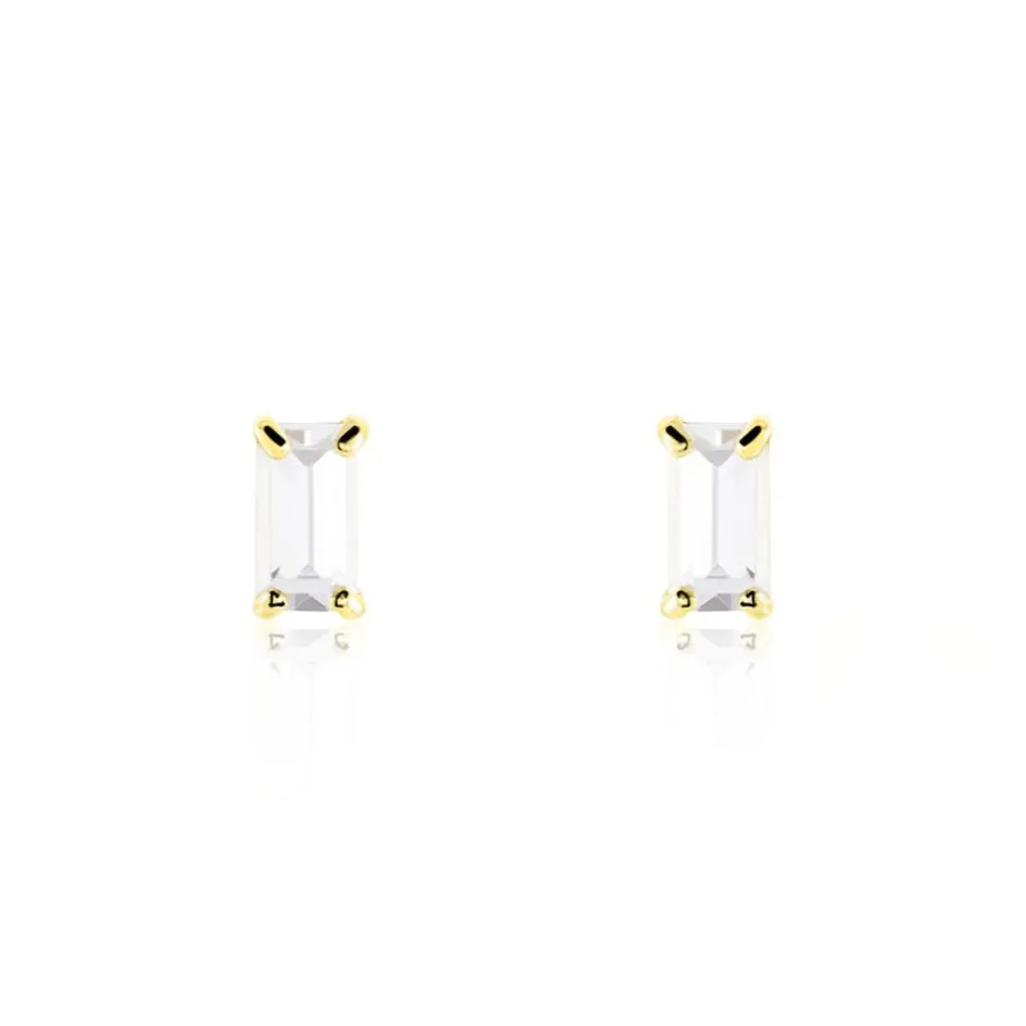 Boucles D’oreilles Puces Or Jaune 375/1000 Rectangles Serti Griffes Oxydes De Zirconium 3x5mm