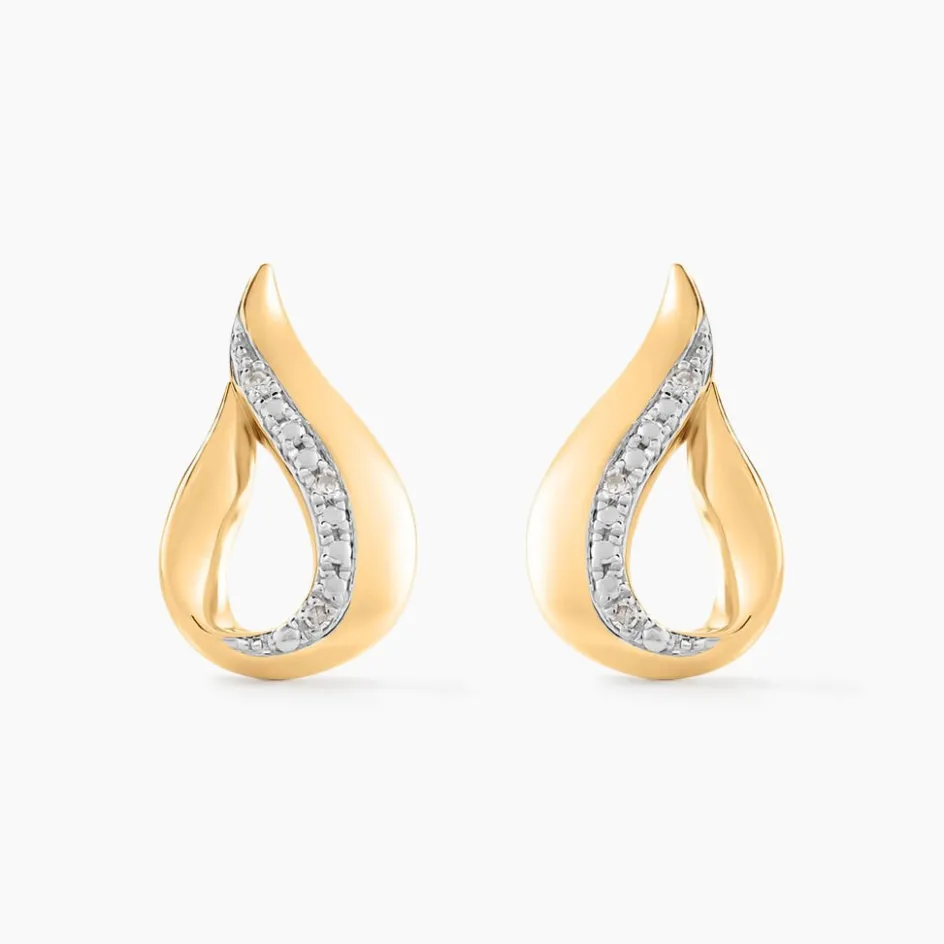 Boucles D’oreilles Puces Or Jaune 375/1000 Et Diamants Goccie