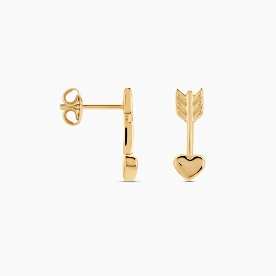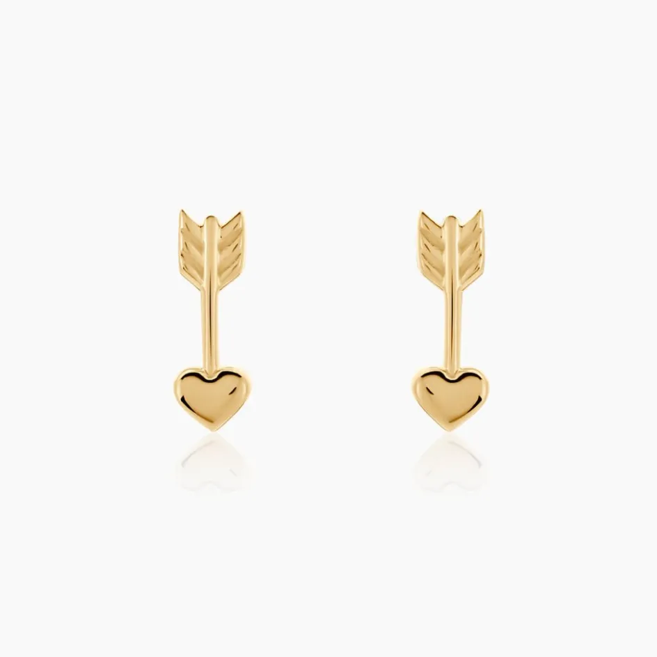 Boucles D’oreilles Puces Plaqué Or Jaune Flèches Forme C艙ur