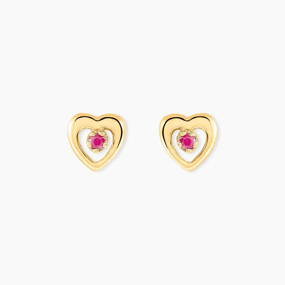 Boucles D’oreilles Or Jaune 375/1000 C艙ur Rubis