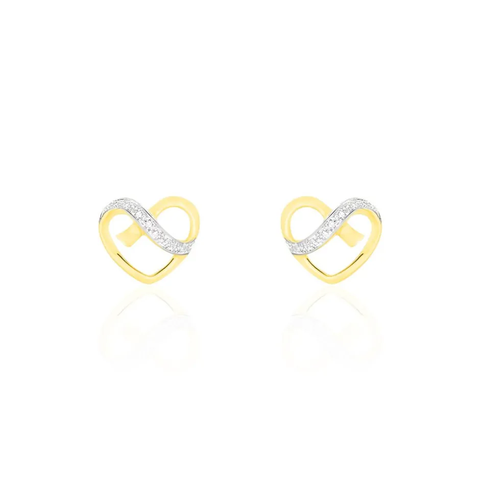 Boucles D’oreilles Or Jaune 375/1000 Formes C艙urs Rubans De Diamants