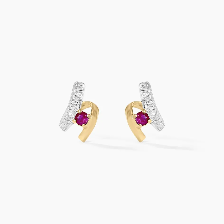 Boucles D’oreilles Or Jaune 375/1000 Rhodie Rubis