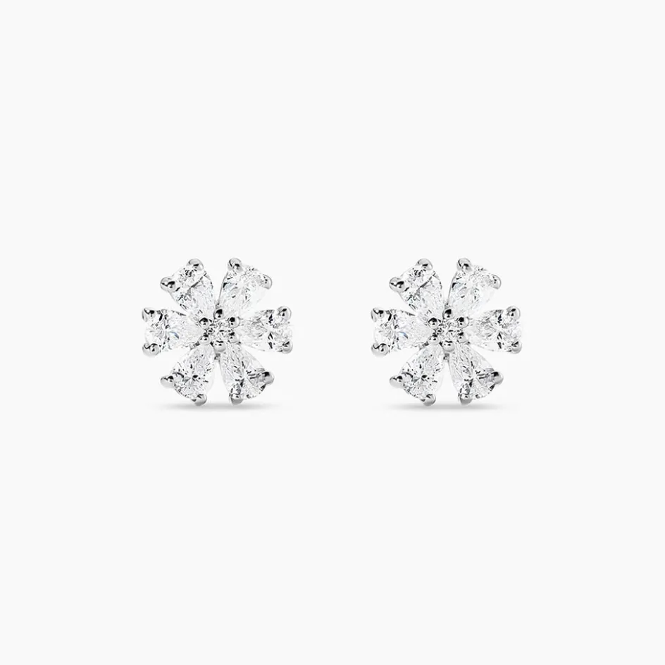 Boucles D’oreilles Or Blanc 375/1000 Puces Motifs Poire Et Rond Oxydes De Zirconium