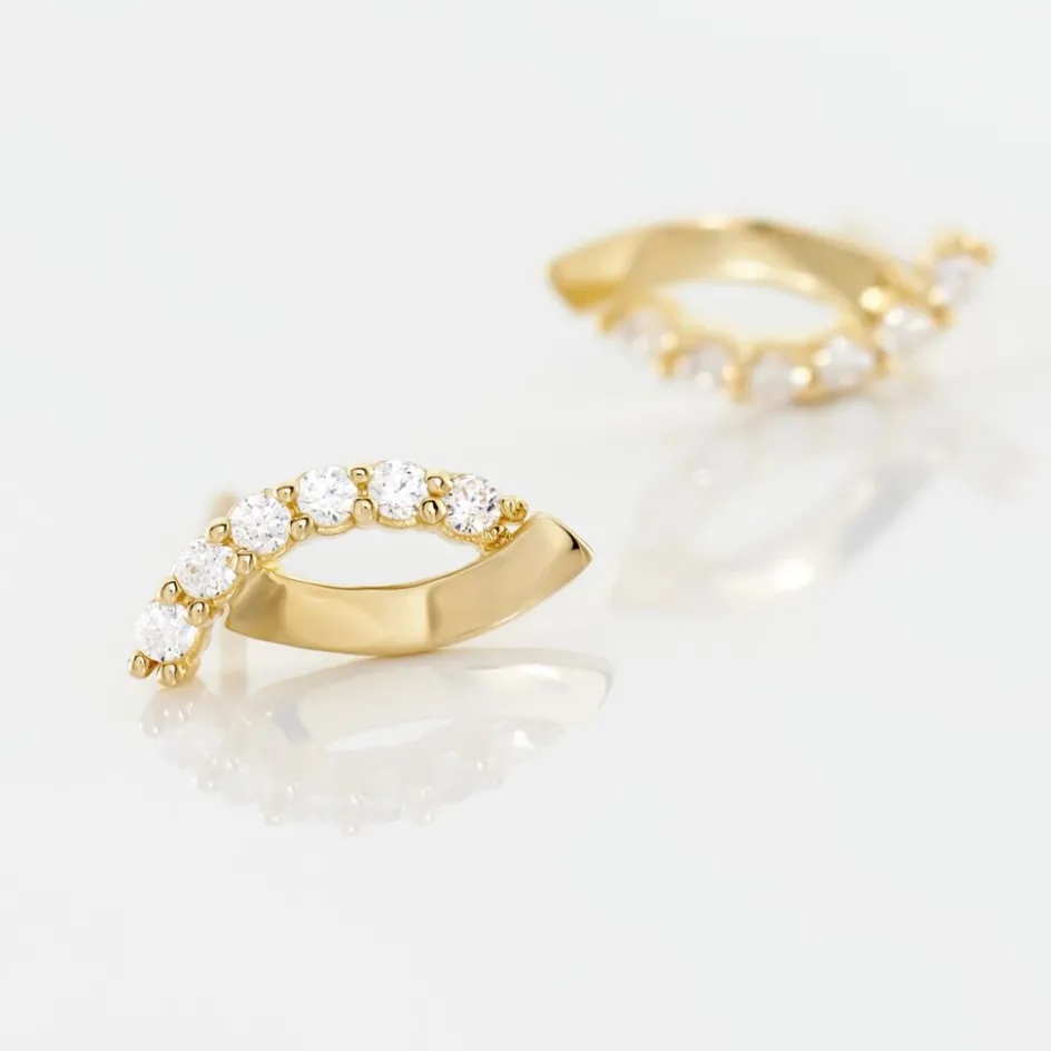 Boucles D’oreilles Puces Or Jaune 375/1000 Formes Gouttes Ajourées Oxydes De Zirconium