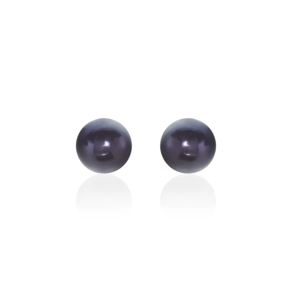 Boucles D’oreilles Or Jaune 375/1000 Perles De Culture Bouton Teintées Noires 8/8.5mm