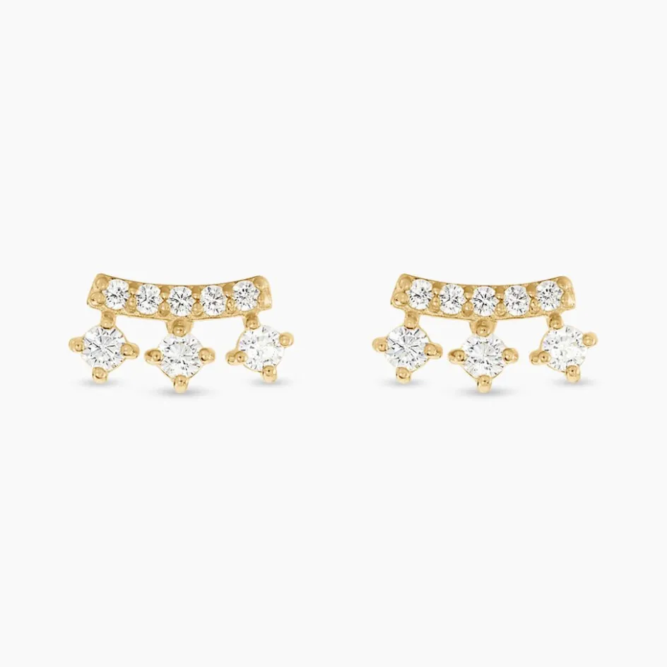 Boucles D’oreilles Puces Or Jaune 375/1000 Barette Oxydes De Zirconium Blanc Serti Griffes
