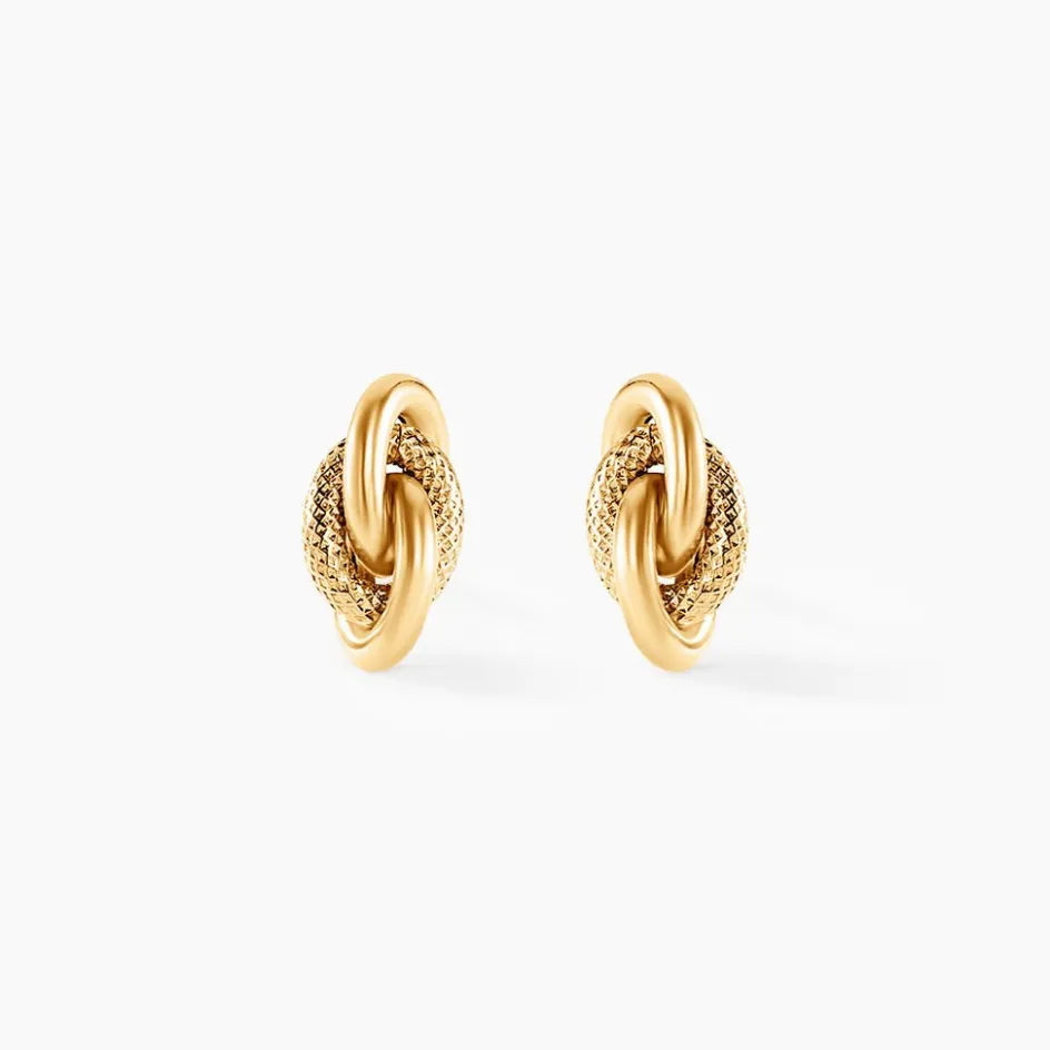 Boucles D’oreilles Puces Or Jaune 750/1000 N艙uds Effet Lisses Et Perles