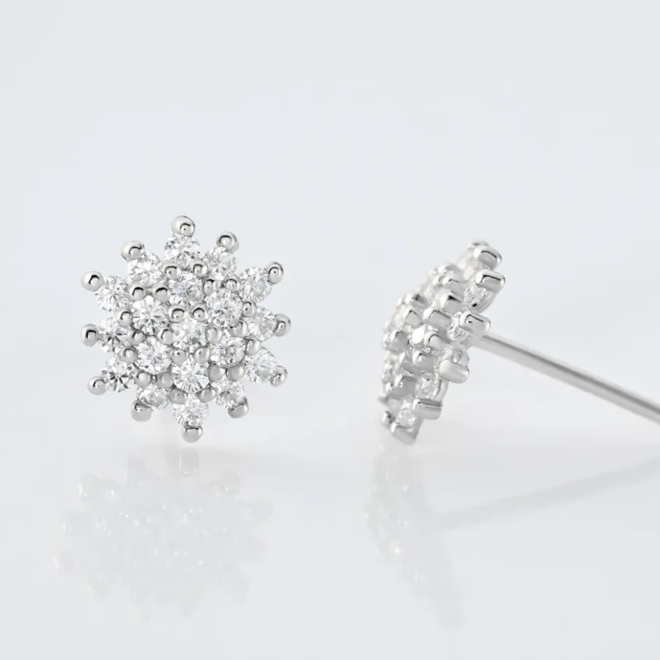 Boucles D’oreilles Puces Or Blanc 375/1000 Oxydes De Zirconium Serti Pavage