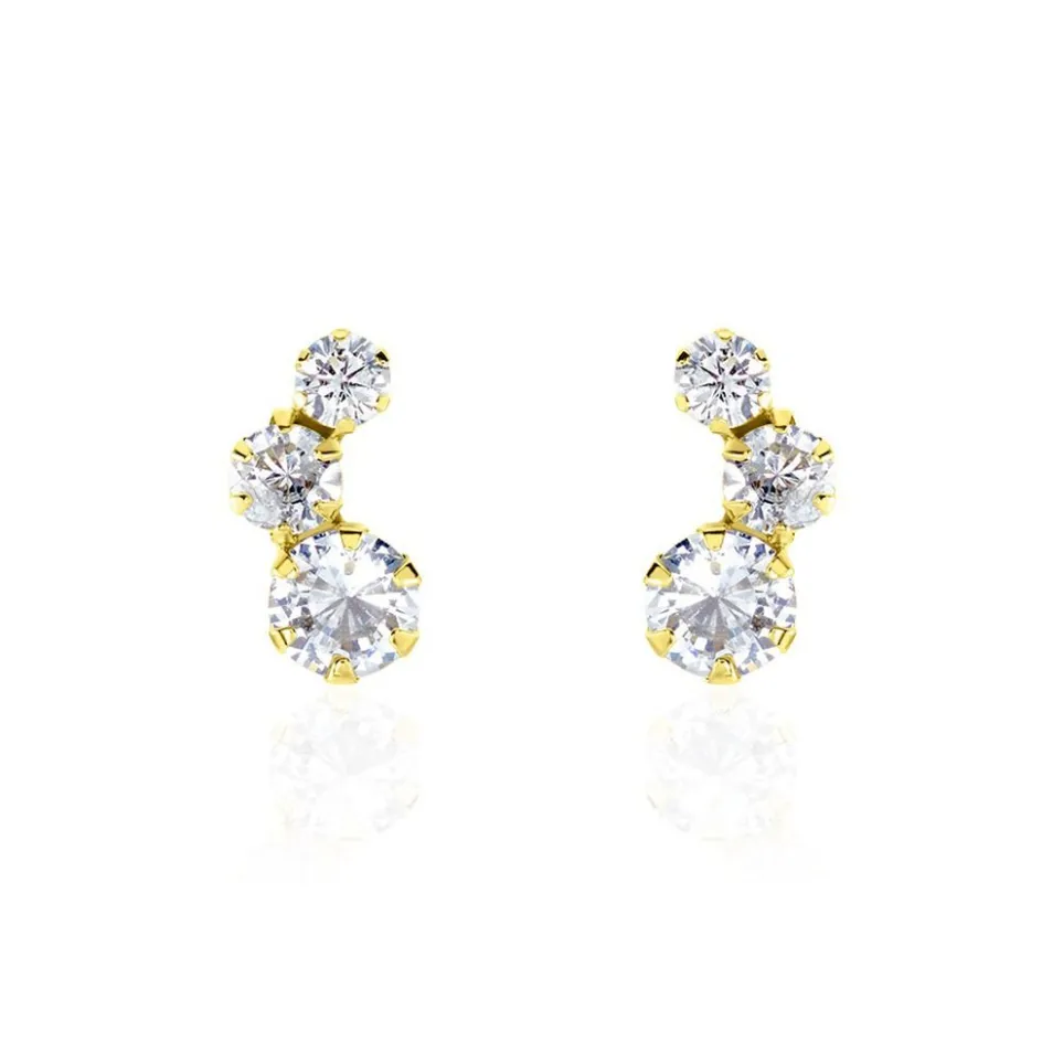 Boucles D’oreilles Puces Or Jaune 375/1000 Barrettes Oxydes De Zirconium