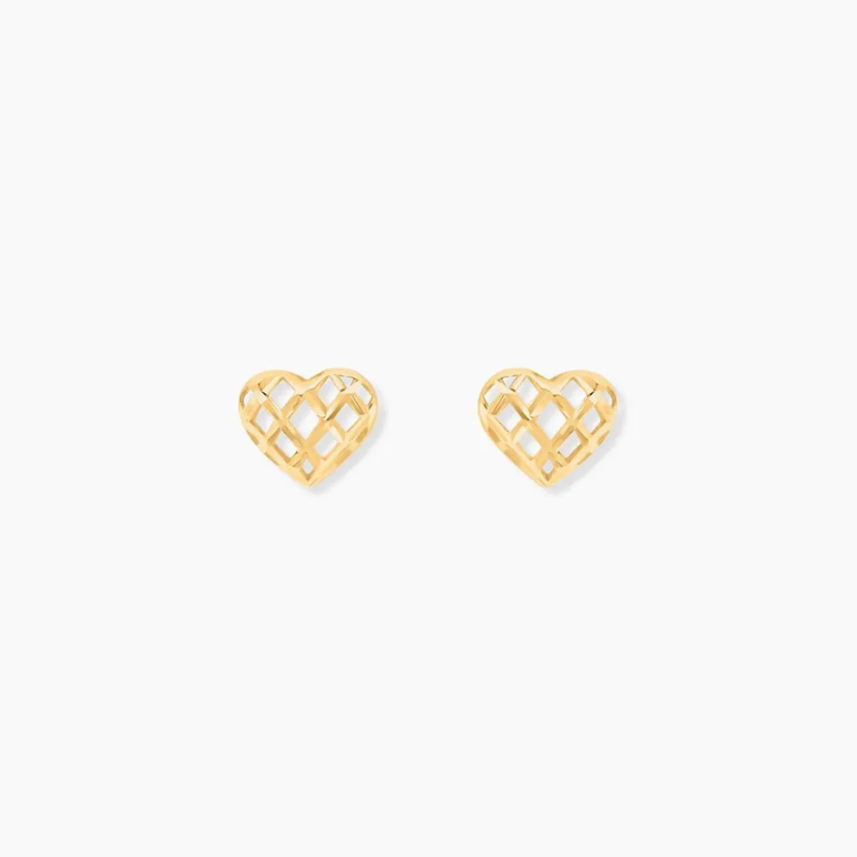 Boucles D’oreilles Puces Or Jaune 375/1000 C艙urs