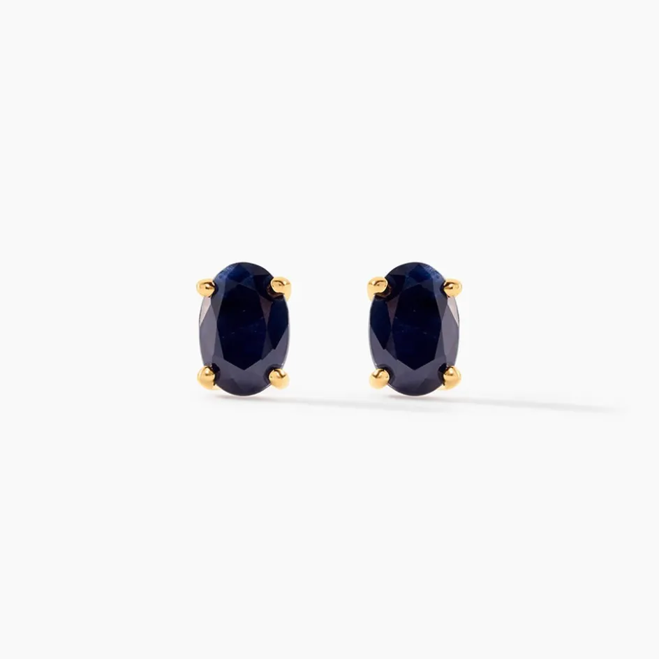 Boucles D’oreilles Puces Or Jaune 375/1000 Saphir Oval Serti Griffes 1.18ct