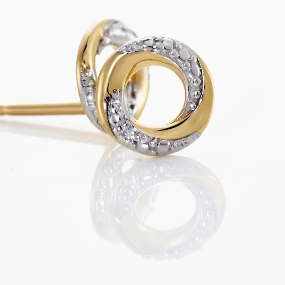 Boucles D’oreilles Puces Or Jaune 375/1000 Formes Cercles Diamants