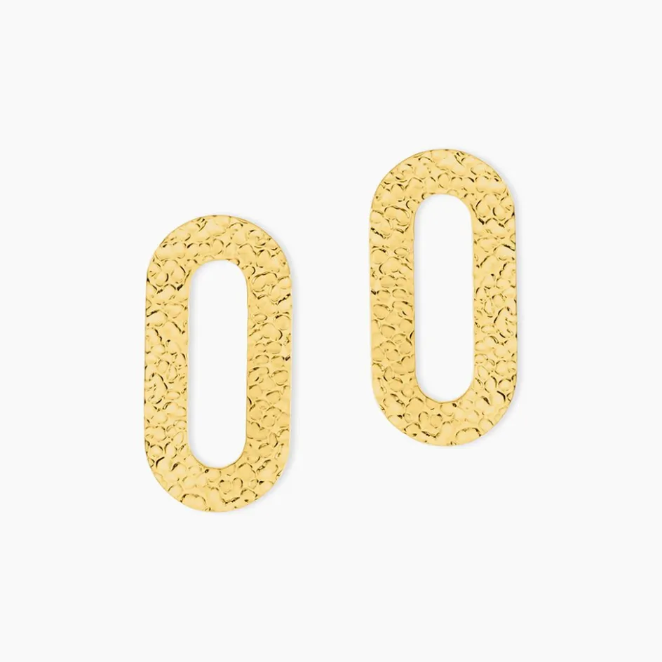 Boucles D’oreilles Pendantes Acier Inoxydable Jaune Ovales Ajourees Martelees