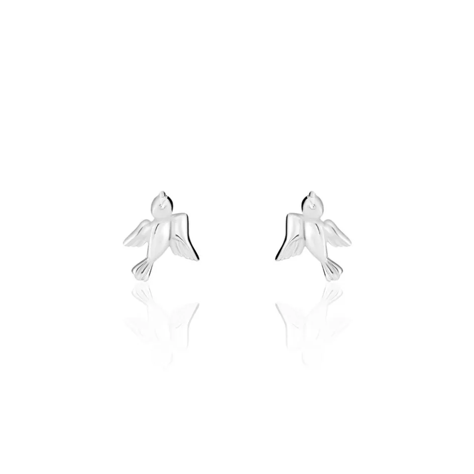 Boucles D’oreilles Puces Argent Blanc 925/1000 Oiseaux