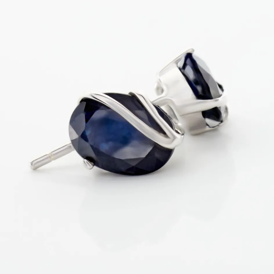 Boucle D’oreille Or Blanc 375/1000 Saphir Bleus Ovale