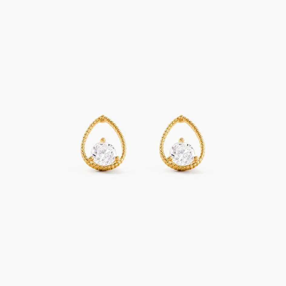 Bo Puces Or Jaune 375/1000 Goutte Oxyde De Zirconium Blanc Serti 3 Griffes
