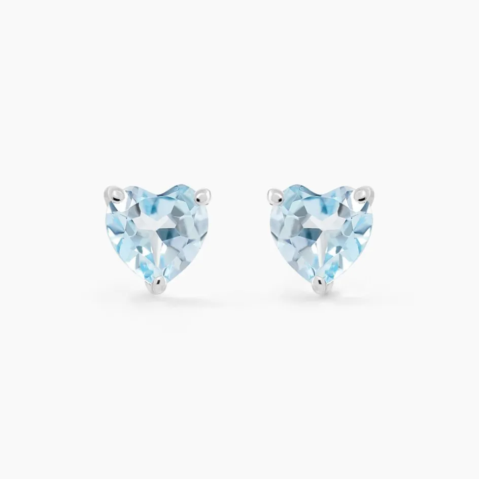 Boucles D’oreilles Or Blanc 375/1000 Topazes Bleues C艙urs