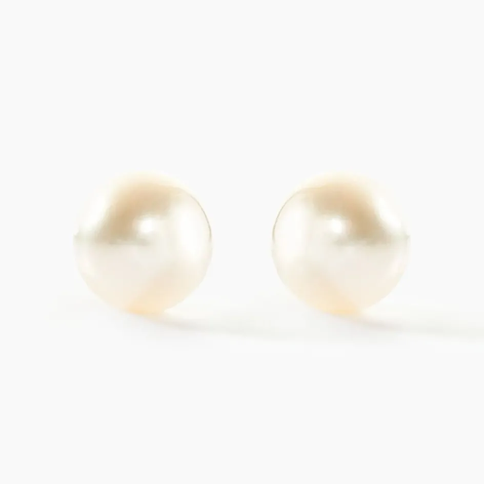 Boucles D’oreilles Or Jaune 375/1000 Perles De Culture 6.5/7mm Rondes