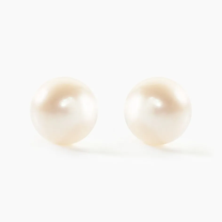 Boucles D’oreilles Or Jaune 375/1000 Perles De Culture 7/7.5mm Rondes