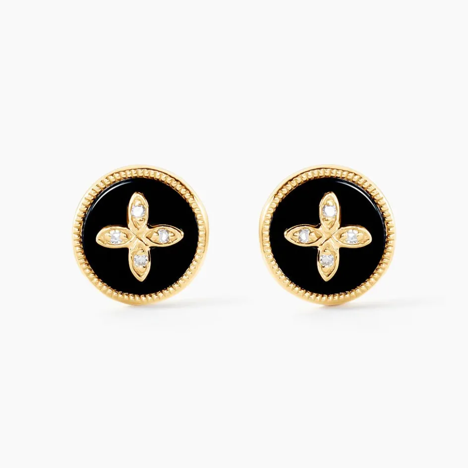 Histoire d’Or Boucles D’oreilles Puces Talisman Or Jaune Agate Diamant* Boucles D’Oreilles|Clous D’Oreilles