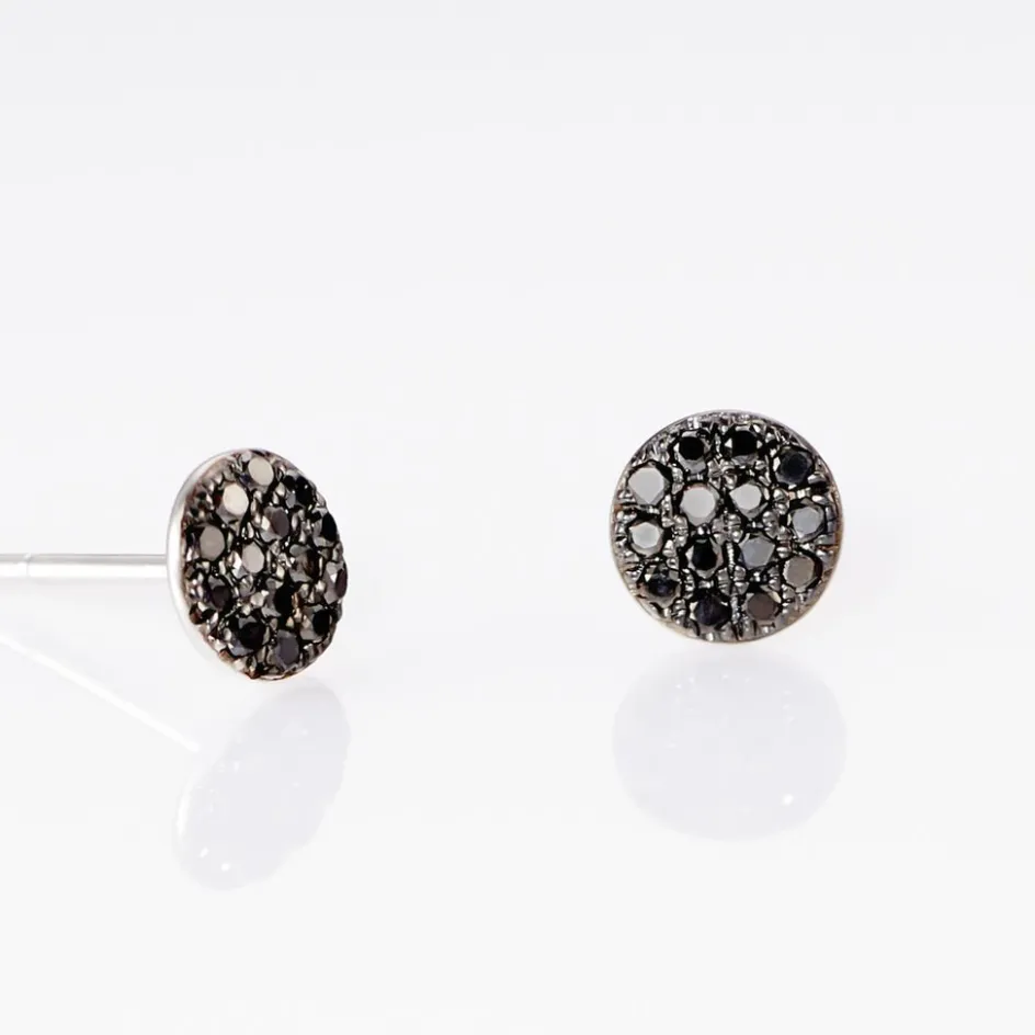 Boucles D’oreilles Or Blanc 375/1000 Ronde Micro Setting Diamants Noirs