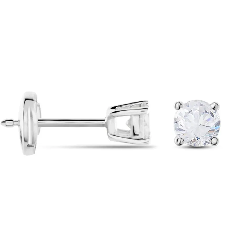 Boucles D’oreilles Or Blanc 375/1000 Puces Diamants 0.38cts Sertis 4 Griffes