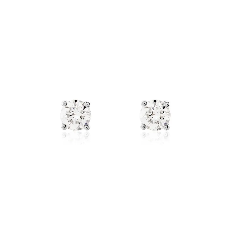 Boucles D’oreilles Platine 950/1000 Puces Diamants 0.30cts Sertis 4 Griffes Systemes Alpas