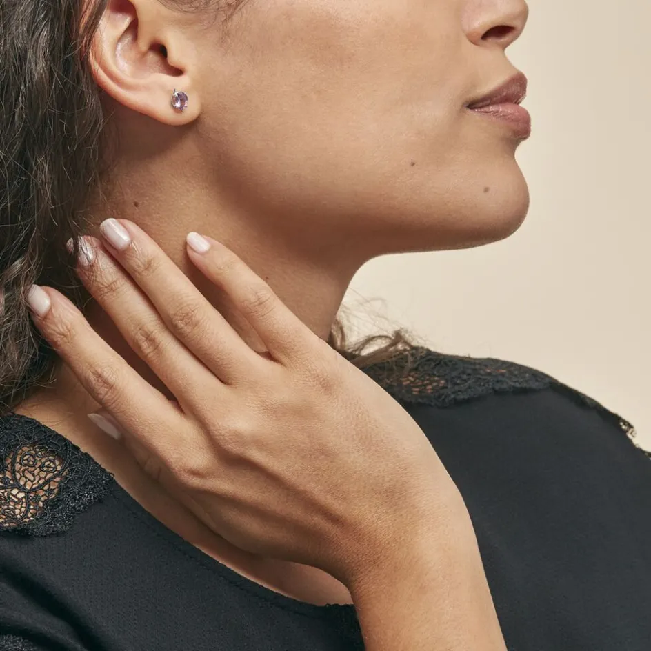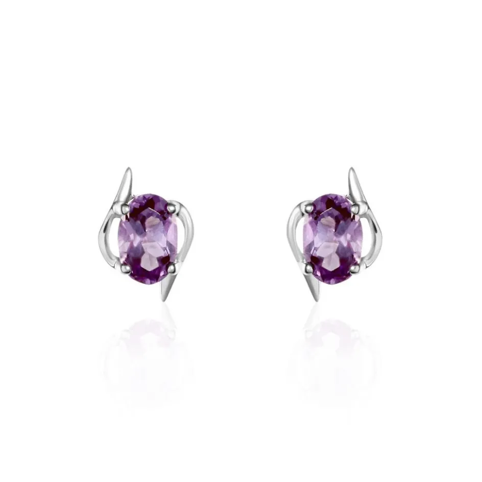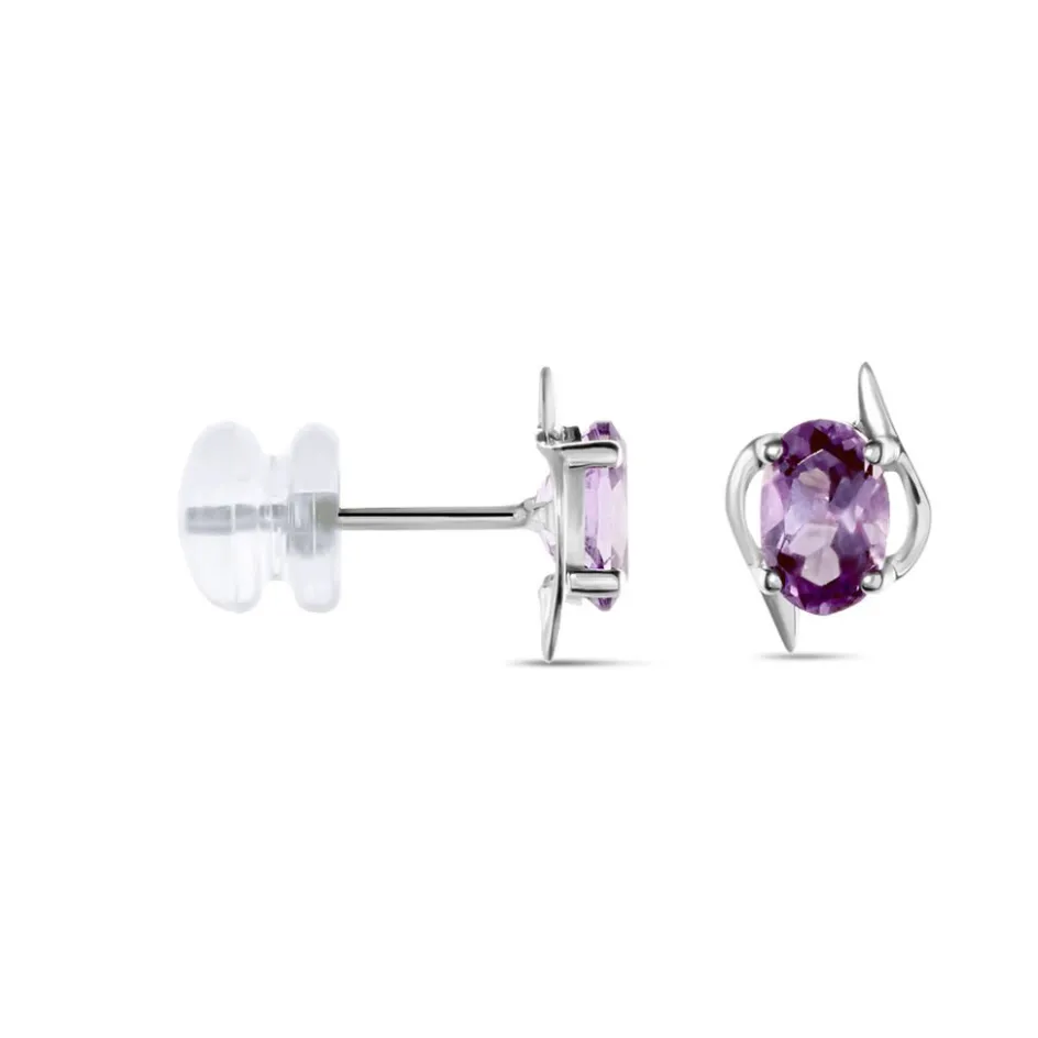 Boucles D’oreilles Or Blanc 375/1000 Améthystes Ovales Serti Griffes